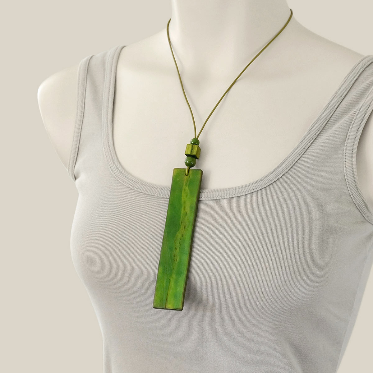 Olive Green Necklace with Handcrafted Leather Pendant