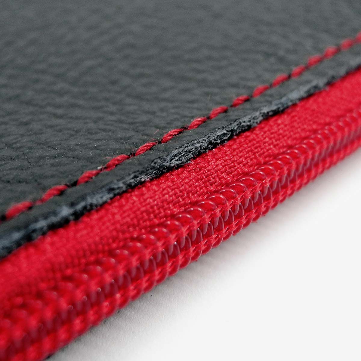 Leather Pencil Case with Dark Red Zipper and Beaded Zipper Pull