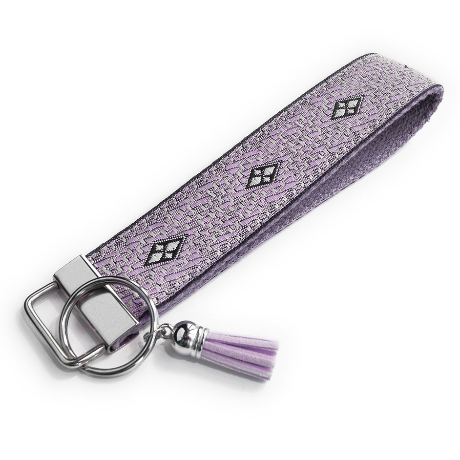 This soft lavender colored keychain with its enchanting Bohemian touch will do just that for you! With its subtle, somewhat medieval style pattern and velveteen tassel, it is a playful accessory that will instantly glam up your keys. What makes this cotton canvas lanyard so very special are not only the premium materials and the care with which it was created... but each piece is also part of a small exclusive edition, offered in small numbers only, many of them being one-of-a-kind, so you will be guaranteed to own something individual and unique.